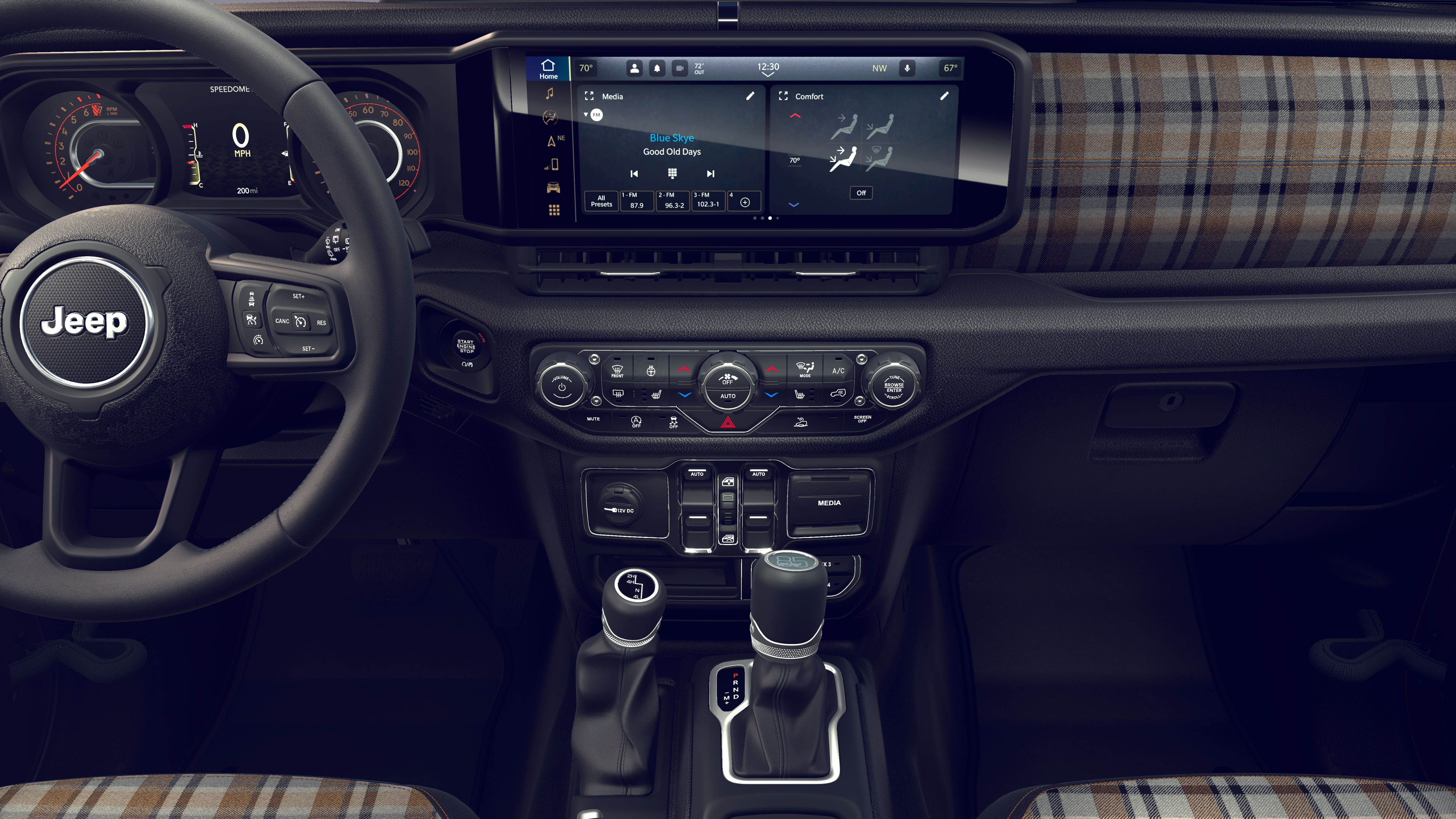 QUICK ORDER PACKAGE 22F 85TH ANNIVERSARY EDITION 2.0L I4 DOHC DI Turbo Engine w/ESS, 8-Speed Automatic 850RE Transmission, Heated Front Seats, Anti-Lock 4-Wheel Disc Brakes, Mayan Gold Interior Accents, 85th Tailgate Decal, 85th Wrangler Hood Decal, Body Color Fenders Flares, Daytime Running Lamps LED Accents, Front LED Fog Lamps, LED Premium Reflector Headlamps, Heated Steering Wheel, Plaid Wrap Instrument Panel Mid-Bolster, Corning Gorilla Glass, Security Alarm, Air Filtering, Advanced Brake Assist, Berber Floor Mats, Automatic Headlamps, 85th Shifter Medallion, Air Conditioning w/Auto Temp Control, Bronze Tow Hooks, Berber Cargo Mats, Central ADAS Decision Module (CADM), 85th Fender Decal, Full Speed Forward Collision Warning Plus, Emergency/Assistance Call, Gray/Bronze Trail Rated, 8-SPEED AUTOMATIC 850RE TRANSMISSION Adaptive Cruise Control w/Stop, Anti-Lock 4-Wheel Disc Brakes, Remote Start System, Dana M200 Rear Axle, Selec-Speed Control (STD), BLACK 3-PIECE HARD TOP Freedom Panel Storage Bag, Rear Window Defroster, Rear Window Wiper/Washer, No Soft Top, SAFETY GROUP ParkSense Rear Park Assist System, Auto High Beam Headlamp Control, Blind Spot & Cross Path Detection, LED Taillamps, Injection Molded Black Rear Bumper, TRAILER TOW & AUX SWITCH GROUP Class II Receiver Hitch, 7 & 4 Pin Wiring Harness, Auxiliary Switches, MOPAR BLACK TUBULAR SIDE STEPS, 2.0L I4 DOHC DI TURBO ENGINE W/ESS. Jeep 85th Anniversary with Granite Crystal Metallic Clearcoat exterior and Black interior features a 4 Cylinder Engine with 270 HP at 5250 RPM*.