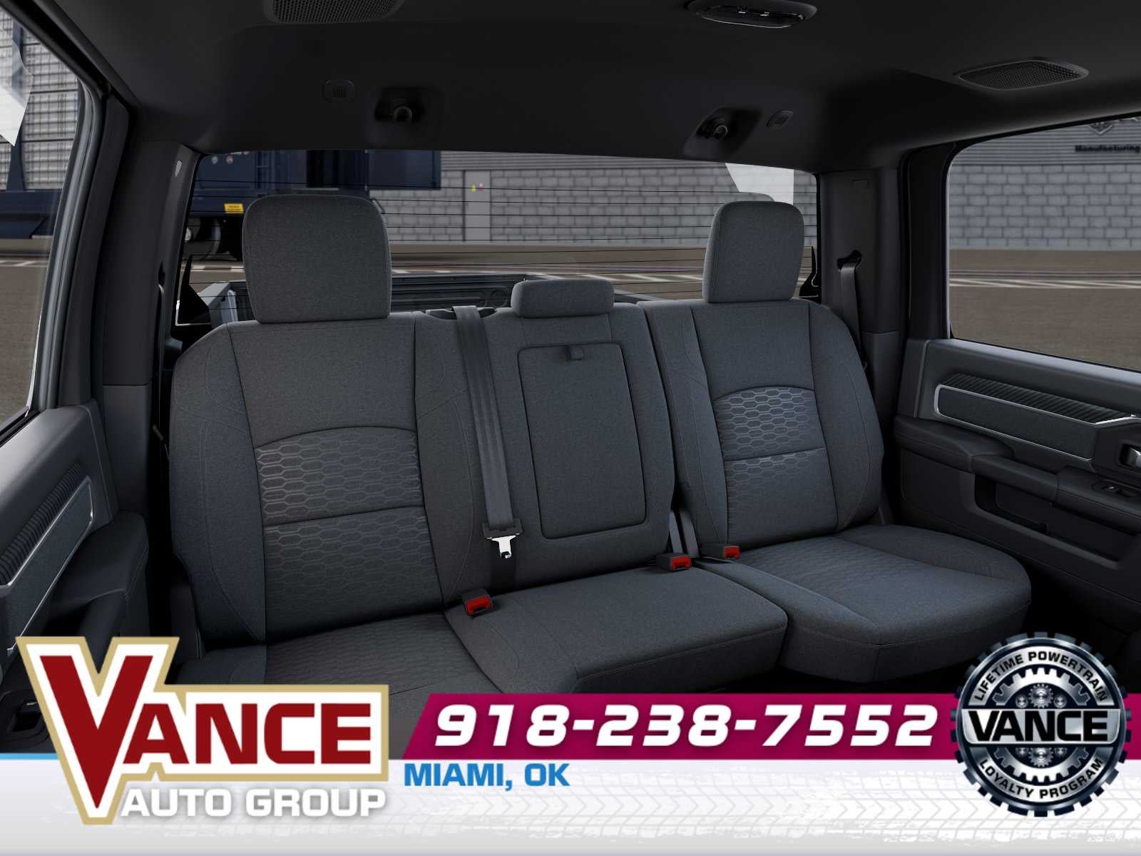 ENGINE: 6.7L I6 CUMMINS HO TURBO DIESEL Selective Catalytic Reduction (Urea), Dual 730 Amp Maintenance Free Batteries, Cummins Turbo Diesel Badge, Heavy Duty Engine Cooling, Current Generation Engine Controller, Diesel Exhaust Brake, Supplemental Heater, 3.42 Axle Ratio, Front Bumper Sight Shields, Capless Fuel Fill w/o Discriminator, BIG HORN LEVEL 1 PLUS EQUIPMENT GROUP For Details Visit DriveUconnect.com, For More Info, Call 800-643-2112, Emergency Vehicle Alert System (EVAS), 12 Touchscreen Display, Glove Box Lamp, Auto Power-Folding Mirrors, Footwell Courtesy Lamp, MOPAR Deployable Bed Step, Alexa Built-In, Forward & Reverse Utility Lights, Locking Lower Glove Box, Remote Start System, 9 Alpine Speakers w/Subwoofer, Disassociated Touchscreen Display, Dual Glove Boxes, 2nd Row In Floor Storage Bins, Rear View Auto Dim Mirror, Rear Dome w/On/Off Switch Lamp, LED Bed Lighting, GPS Navigation, SiriusXM w/360L, Connected Travel & Traffic Services, Foam Bottle Insert (Door Trim Panel), Big Horn IP Badge, Off-Road Information Pages, Trailer Tow Pages, HD Radio, Radio: Uconnect 5 Nav w/12.0 Display, Power Heated Fold, DUAL REAR WHEELS Clearance Lamps, Tires: LT235/80R17E BSW All Season, 17 Steel Spare Wheel, Box & Rear Fender Clearance Lamps, 6000# Front Axle w/Hub Ext, Wheels: 17 x 6.0 Polished Aluminum, Nexen Brand Tires, GVWR: 14,000 lb, Rear Wheelhouse Liners, HEATED SEATS & WHEEL GROUP Heated Steering Wheel, Heated Front Seats, BLACK, PREMIUM CLOTH BUCKET SEATS Bucket Seats, Rear 60/40 Folding Seat, Power Adjust 8-Way Driver Seat, Folding Flat Load Floor Storage, Front Seat Back Map Pockets, Power 2-Way Driver Lumbar Adjust, Full Length Upgraded Floor Console, TRANSMISSION: 8-SPEED TORQUEFLITE HD AUTOMATIC.