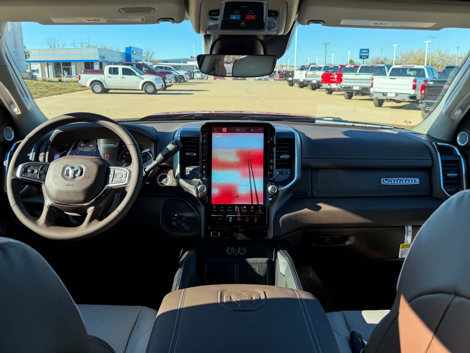 Back-Up Camera, iPod/MP3 Input, Trailer Hitch, Aluminum Wheels, Remote Engine Start. Ram Laramie with Molten Red Pearlcoat exterior and Bison Brown/Sea Salt interior features a Straight 6 Cylinder Engine with 430 HP at 2800 RPM*.