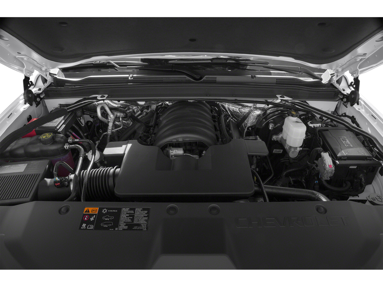 ADAPTIVE CRUISE CONTROL with Front Automatic Braking, sophisticated radar transceiver automatically adjusts speed to maintain preset following distance, ENTERTAINMENT SYSTEM, REAR SEAT, BLU-RAY/DVD with remote control, overhead display, two 2-channel wireless infrared headphones and auxiliary audio/video input jacks/SD and USB slots, WHEELS, 20 X 9 (50.8 CM X 22.9 CM) CHROME, SEATING, FRONT BUCKET WITH PERFORATED LEATHER-APPOINTED HEATED AND COOLED SEAT CUSHIONS 12-way power driver and passenger seat includes 6-way power cushions, driver seat 2-position memory, 4-way power lumbar control and power recline (STD), AUDIO SYSTEM, CHEVROLET MYLINK RADIO WITH NAVIGATION, AM/FM STEREO AND CD PLAYER 5 USB ports, 1 SD card reader and an auxiliary jack (STD), ENGINE, 5.3L ECOTEC3 V8 WITH ACTIVE FUEL MANAGEMENT, DIRECT INJECTION AND VARIABLE VALVE TIMING includes aluminum block construction (355 hp [265 kW] @ 5600 rpm, 383 lb-ft of torque [518 N-m] @ 4100 rpm) (STD), TRANSMISSION, 6-SPEED AUTOMATIC, ELECTRONICALLY CONTROLLED with overdrive and tow/haul mode (STD). Chevrolet LTZ with White Diamond Tricoat exterior and Cocoa/Dune interior features a 8 Cylinder Engine with 355 HP at 5600 RPM*.
