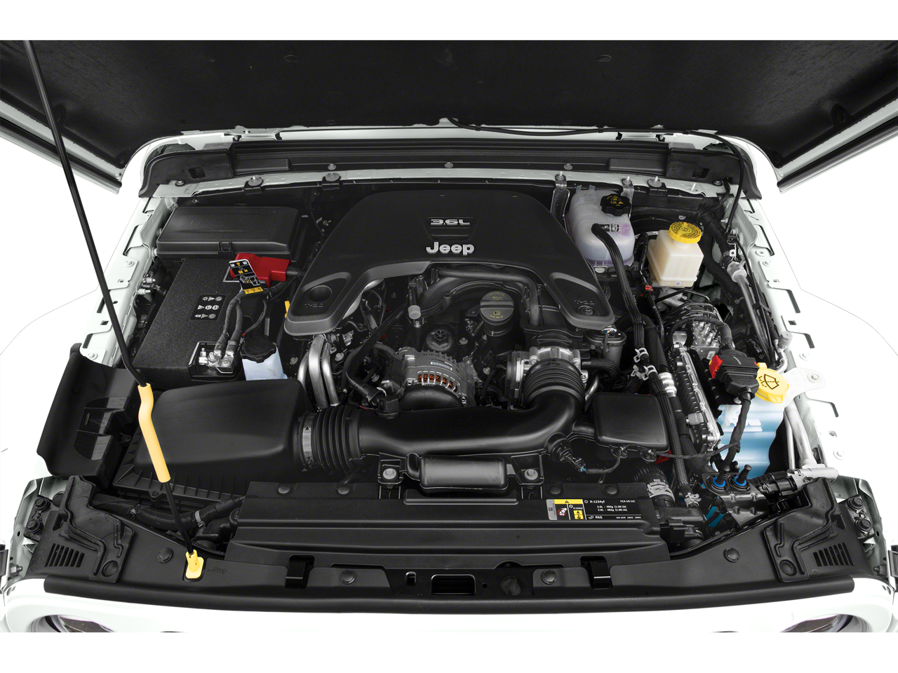 TRANSMISSION: 8-SPEED AUTOMATIC (850RE) Tip Start, Transmission Skid Plate, Selec-Speed Control, BLACK 3-PIECE HARD TOP Freedom Panel Storage Bag, Rear Window Defroster, Rear Sliding Window, No Soft Top, ANTI-SPIN DIFFERENTIAL REAR AXLE, TRAILER TOW PACKAGE Trailer Hitch Zoom, Class IV Hitch Receiver, Heavy Duty Engine Cooling, 240 Amp Alternator, ENGINE: 3.6L V6 24V VVT UPG I W/ESS (STD).