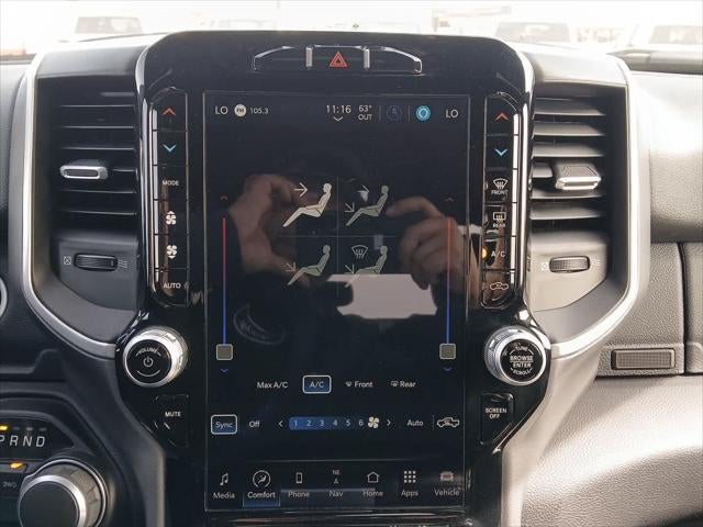RADIO: UCONNECT 5 NAV W/12.0 DISPLAY Google Android Auto®, Off-Road Information Pages, Selectable Tire Fill Alert, Trailer Tow Pages, Disassociated Touchscreen Display, HD Radio, For Details, Visit DriveUconnect.com, For More Info, Call 800-643-2112, 12 Touchscreen Display, Air Conditioning ATC w/Dual Zone Control, GPS Navigation, 4G LTE Wi-Fi Hot Spot, SiriusXM w/360L, All Radio Equipped Vehicles, Connected Travel & Traffic Services, All R1 High Radios, Alexa Built-In, Apple CarPlay®, CHROME FLAT CAB-LENGTH SIDE STEPS, 9 ALPINE SPEAKERS W/SUBWOOFER, ANTI-SPIN DIFFERENTIAL REAR AXLE, PROTECTION GROUP Transfer Case Skid Plate Shield, Tow Hooks, LEVEL 1 EQUIPMENT GROUP Google Android Auto®, For Details, Visit DriveUconnect.com, For More Info, Call 800-643-2112, Leather Wrapped Steering Wheel, Rear Dome w/On/Off Switch Lamp, Front Fog Lamps, Glove Box Lamp, Auto Power-Folding Mirrors, Footwell Courtesy Lamp, 4G LTE Wi-Fi Hot Spot, Mirror Running Lights, Radio: Uconnect 5 W w/8.4 Display, 8.4 Touchscreen Display, Foam Bottle Insert (Door Trim Panel), Wheels: 18 x 8.0 Polished Aluminum, Apple CarPlay®, Big Horn IP Badge, Power Adjustable Convex Aux Mirrors, Forward & Reverse Utility Lights, Locking Lower Glove Box, Selectable Tire Fill Alert, SiriusXM Satellite Radio, Power Heated Fold Telescope Mirrors, Exterior Mirrors w/Supplemental Signals, Steering Wheel Mounted Audio Controls, Exterior Mirrors Courtesy Lamps, Dual Glove, TRANSMISSION: 8-SPEED AUTO (8HP75-LCV) (STD), ENGINE: 6.4L V8 HEAVY DUTY HEMI MDS (STD). Ram Big Horn with Flame Red Clearcoat exterior and Black interior features a 8 Cylinder Engine with 410 HP at 5600 RPM*.